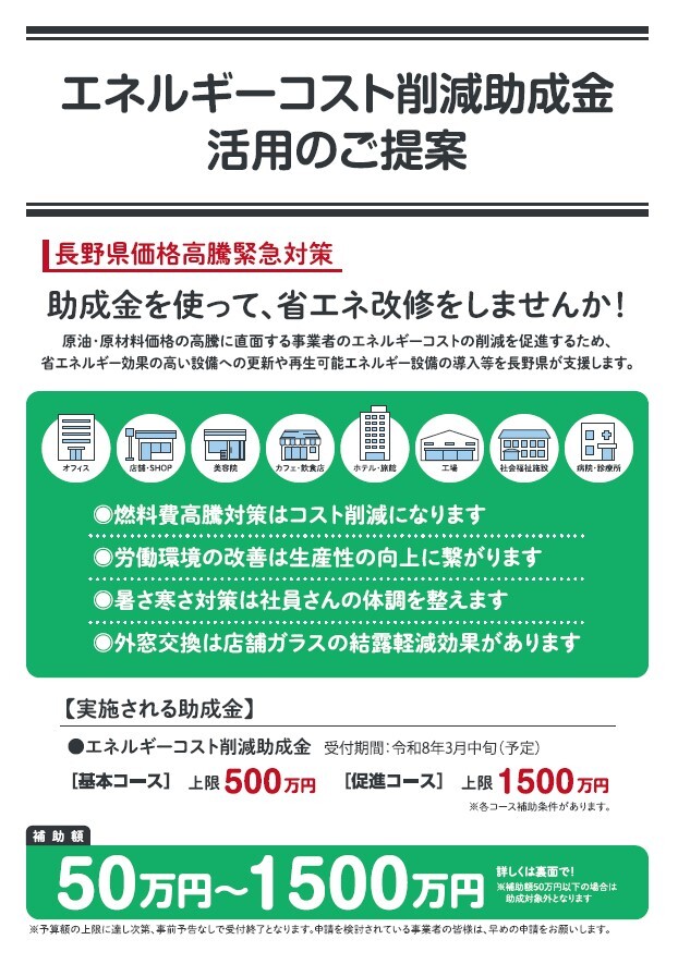 長野県エネルギーコスト削減助成金が始まりました!